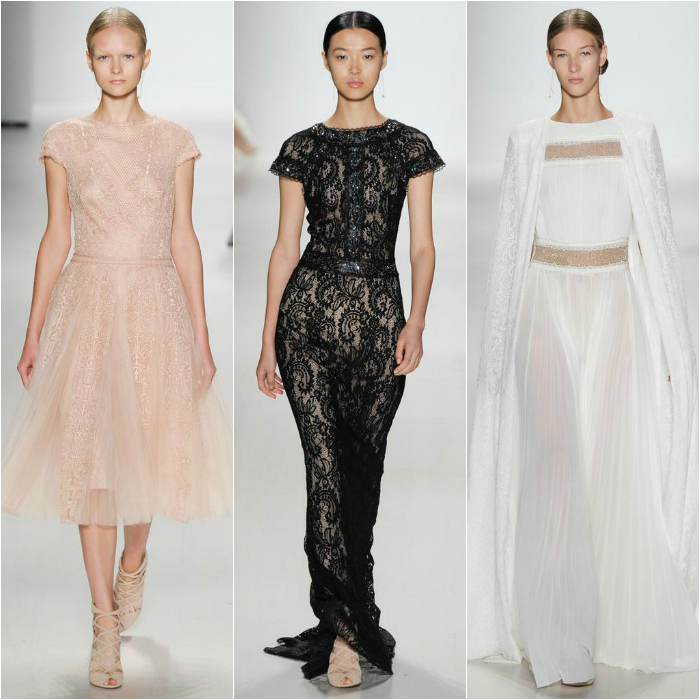 One of my favorite shows of the day was by Japanese designer Tadashi Shoji. Shoji is a legend in his own right by his involvement with the fashion industry dating as far back as the sixties. His aesthetic is always contemporary, chic, and effortlessly elegant. Shoji’s Spring 2015 Ready-To-Wear was dominated by colors that were airy and clean. Ivory, peach, navy, and a little custard yellow. The collection was inspired by Galleria Giorgio Franchetti alla Ca' d'Oro also known as the "Golden Palace of Venice,” which was made clear by the silhouettes full of royal opulence. The collection featured bell sleeved dresses and floor length capes of solid chiffon with delicate embroidery. Speaking of delicate, the collection also had many fluid lace pieces that moved gracefully down the runway. I can see many pieces of this collection being ideal during award season. If you’re a celebrity stylist, or celebrity, don’t sleep on Tadashi Shoji Spring 2015.